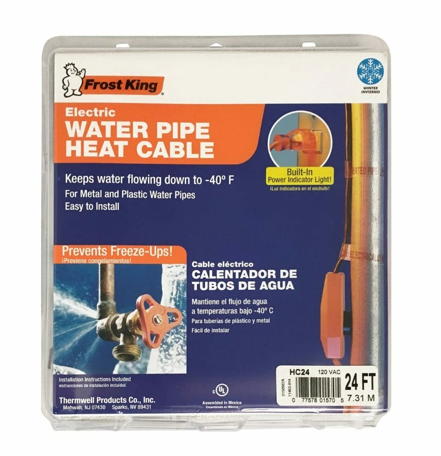 Simply wrap on, insulate, and plug in! Wrap-On pipe heating cables prevent frozen pipes to -50° when properly installed. Simply wrap-on, insulate and plug in on PVC, CPVC, metal or copper pipe. These Wrap-On cables are easier to install than any other cable on the market. The energy-saving design uses only 2 watts per foot and the built-in thermostat automatically turns the cable on at 38° F. An exclusive power sensor light glows when the thermostat is on. 120 volt-UL Listed.