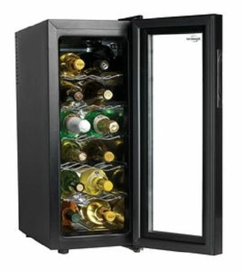 The 12 Bottle Slim Countertop Wine Cooler fits in many places most other wine coolers won°t. This compact wine cooler measures just over 11 inches wide, but it still manages to hold up to 12 bottles of wine in perfect conditions. It uses a thermoelectric cooling unit, so there is no vibration to disturb the sediment in your fine wines.