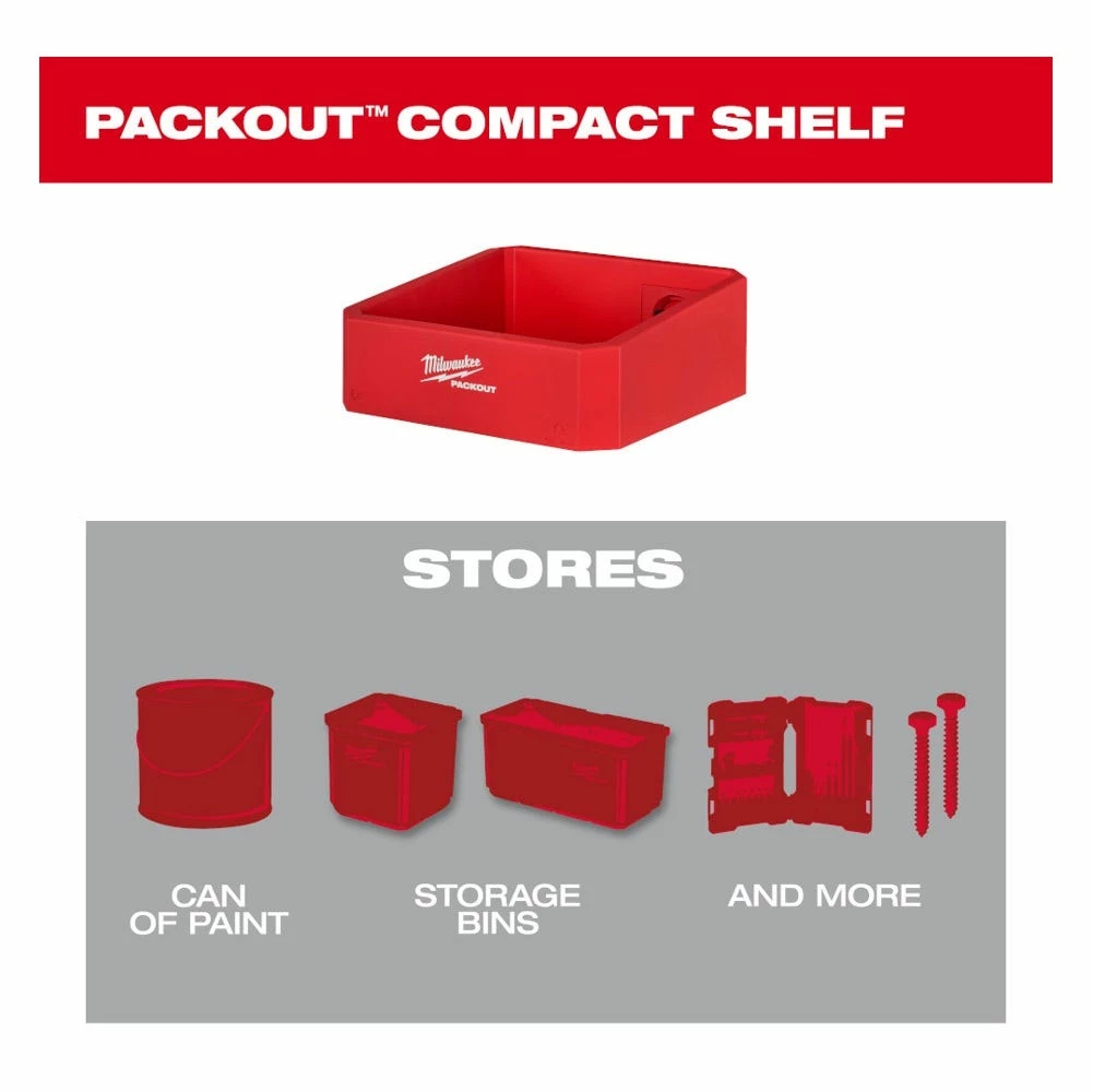 Our PACKOUT™ Compact Shelf delivers the most secure mounting when paired with PACKOUT™ Wall Plates, strongly holding the PACKOUT™ solution mounted to the wall. This Compact Shelf has a 20lbs weight capacity and is optimized to store paint cans, bins, and more. Additionally, our Compact Shelf features connectivity with PACKOUT™ solutions allowing you to fully customize your shop, MILWAUKEE® PACKOUT™ is the industry’s most versatile and durable modular storage system.