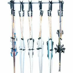 The Cross Country Ski Rack 6 by Monkey Bars is the best cross country ski rack for larger families. This wall mounted ski rack holds 6 pairs of skis and poles securely and makes organizing skis simple and efficient. The Cross Country Ski Rack mounts to the wall in just 15 minutes and can be installed in a garage, shed, shop, closet, basement, or retail shop. The storage rack is made with powder coated industrial steel and accommodates skis of all sizes. The hooks snap tightly to the Monkey Bar and slide along the Monkey Bar, making it the most versatile ski rack on the market. The hooks are made with a polyurethane cover to protect skis while on the ski rack. Purchase your Cross Country Ski Rack today and see for yourself how easy it is to organize your cross country skis.