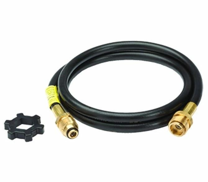 12ft Hose and Regulator Assembly connects appliances that use disposable propane tanks. Flexible and strong, this hose will last you a very long time and the regulator assembly is of the highest quality.