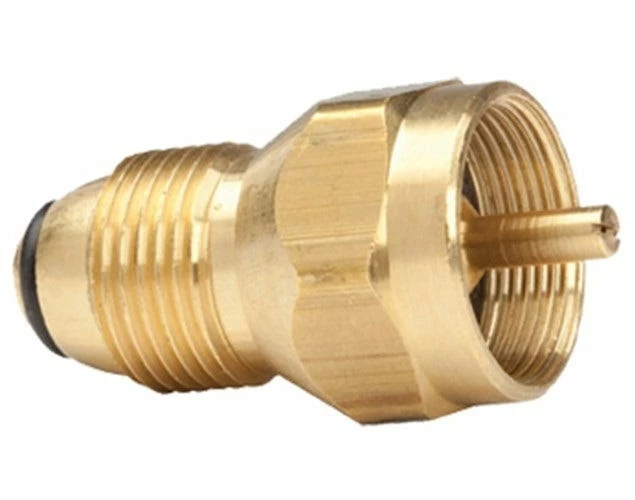 - Has brass nipple to open safety valve in male throwaway cylinders