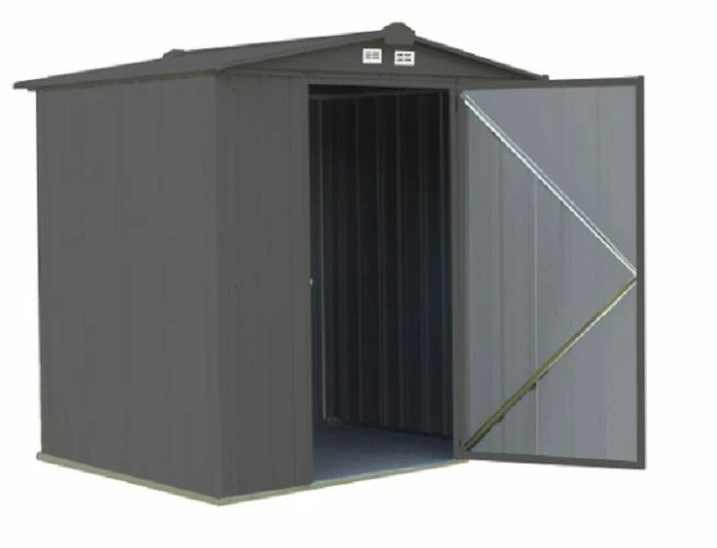 Meet the EZEE Shed: the all-galvanized steel shed that builds in half the time! Featuring our revolutionary patented Snap-It Quick Assembly system for a stronger shed with faster assembly. The EZEE Shed’s unique design cuts hardware down by 50% – and 50% fewer parts means faster assembly! The EZEE Shed’s unique assembly system also reinforces the steel walls of the unit making for a stronger shed overall. The overlapping Snap-IT panels connect every 12″ for a tougher building that is better at resisting dents and damage. A more attractive and modern take on outdoor storage units, the EZEE Shed features an updated color pallet that will serve as a compliment to your outdoor living space. The shed is also fully framed, so there are no exposed panel ends. You’ll have the option to purchase a unit with same panel and trim color, or to highlight the trim by choosing contrasting colors. With swing doors that are 33% larger than the competition, the EZEE Shed makes getting large, bulk items in and out of your shed easier than before. The EZEE Shed offers extra headroom, added storage space and a steeper roof pitch for more headroom and storage space. The unit also features gable vents that allow for better air circulation throughout the unit, reducing humidity inside your shed in hot summer months. Its pad-lockable handles are constructed entirely from steel and are zinc plated to resist corrosion and rust. The EZEE Shed is a strong and modern alternative to your standard backyard shed, and the next step up in steel shed assembly and design.