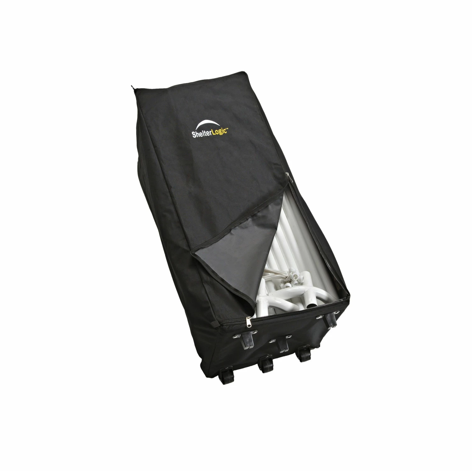 Store-IT canopy rolling storage bag makes seasonal canopy storage quick and easy. Developed to conveniently store and transport the MaxAP canopy 10 x 20 ft. by ShelterLogic, this heavy-duty bag with double wrap zippers rests on a sturdy, reinforced base with 3 rolling wheels for easy and effective stow and go. Spacious enough to fit MaxAP canopy accessories including extension, enclosure and screen house kits. Fits most ShelterLogic 10 x 20 ft. canopies. Storage bag only, canopy sold separately.