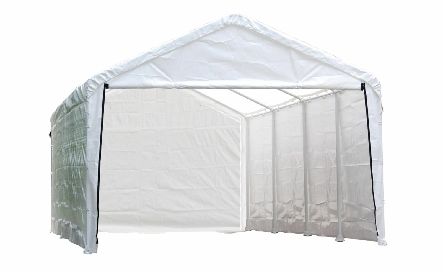 The ShelterLogic 12 ft. x 26 ft. SuperMax Canopy Enclosure kit allows you to expand Your canopy options. Quickly convert your SuperMax 12×26 canopy into a functional, low cost, enclosed seasonal shelter in minutes. Complete ready to install kit attaches in minutes to your existing frame with bungee fasteners. All constructed to the exact frame specifications of the 12×26 SuperMax Canopy.
