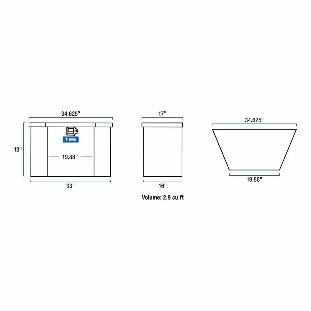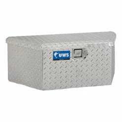UWS trailer tongue boxes provide unbeatable storage and security for your items wherever you tow your trailer. Each box features a corrosion-resistant aluminum construction, a highly secure stainless steel locking system and a patented RigidCore foam-filled lid — all to keep your equipment and valuables safe, well-organized and easily accessible whenever needed. This trailer tool box is designed to be mounted on a straight-tongue trailer, such as a boat trailer or snowmobile trailer. Each UWS trailer tool box is constructed from extra-thick aluminum for increased structural strength. The tub is welded together into a single piece for weather resistance and to easily hold heavy tools and other items. The lid features a patented RigidCore foam-filled design, sandwiched between two aluminum plates. This greatly increases the strength of the lid and helps prevent bending and warping, making operation very smooth. The locking mechanism of the UWS trailer tool box provides excellent security for your items, featuring a stainless steel, key-operated paddle handle. Stainless steel construction supplies the lock with long-lasting corrosion resistance, and the lid also has a MicroSeal gasket, blocking moisture, dust and insects from getting inside and damaging your valuables. The lid also opens a full 90 degrees for easier access, and it is equipped with self-opening struts for convenient operation when your hands are full. UWS trailer boxes are available in multiple sizes to accommodate any storage need. Like all UWS products, each one is proudly made right here in the USA for style and long-lasting dependability (NOTE: This product is heavily packaged for parcel shipping).