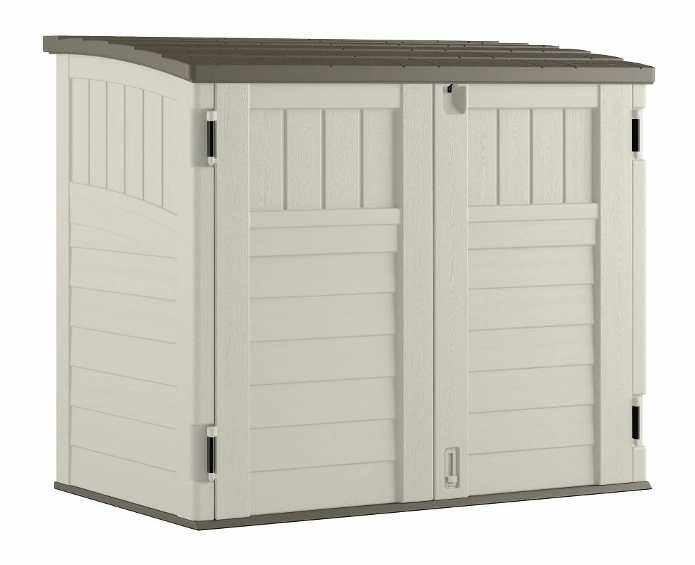 This handy Horizontal Storage Shed can handle any and all of your outdoor organizational needs. Ideal for stowing garbage cans, lawn and garden products, snow blowers, bicycles, and more, this stylish storage solution is essential in every season. Additional features include durable, multi-wall resin construction for year-round strength and stability, a reinforced floor for heavier items, a 3-door locking system for added security, and a sleek, low-profile design that fits neatly in many spaces.
